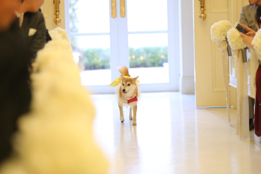 結婚式では、リングドッグとしての晴れ舞台をサポートし、披露宴中は会場の外で心を込めてお世話いたします。